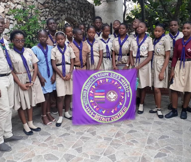 Du vendredi 12 au dimanche 14 mai 2023, le district Port-au-Prince Centre III à organisé un camp de fin de semaine extraordinaire pour les scouts âgés de 12 à 17 ans. Organisé par l'équipe de la branche verte, dirigée par le commissaire Jean Mary Jamesly (animateur au groupe Baden-Powell) et le commissaire de district Steeve Marcellus (animateur au groupe Jephté ), cet événement a rassemblé des scouts passionnés dans le district de Pétion-Ville, à l'école Dominique Savio chez les Salésiens.